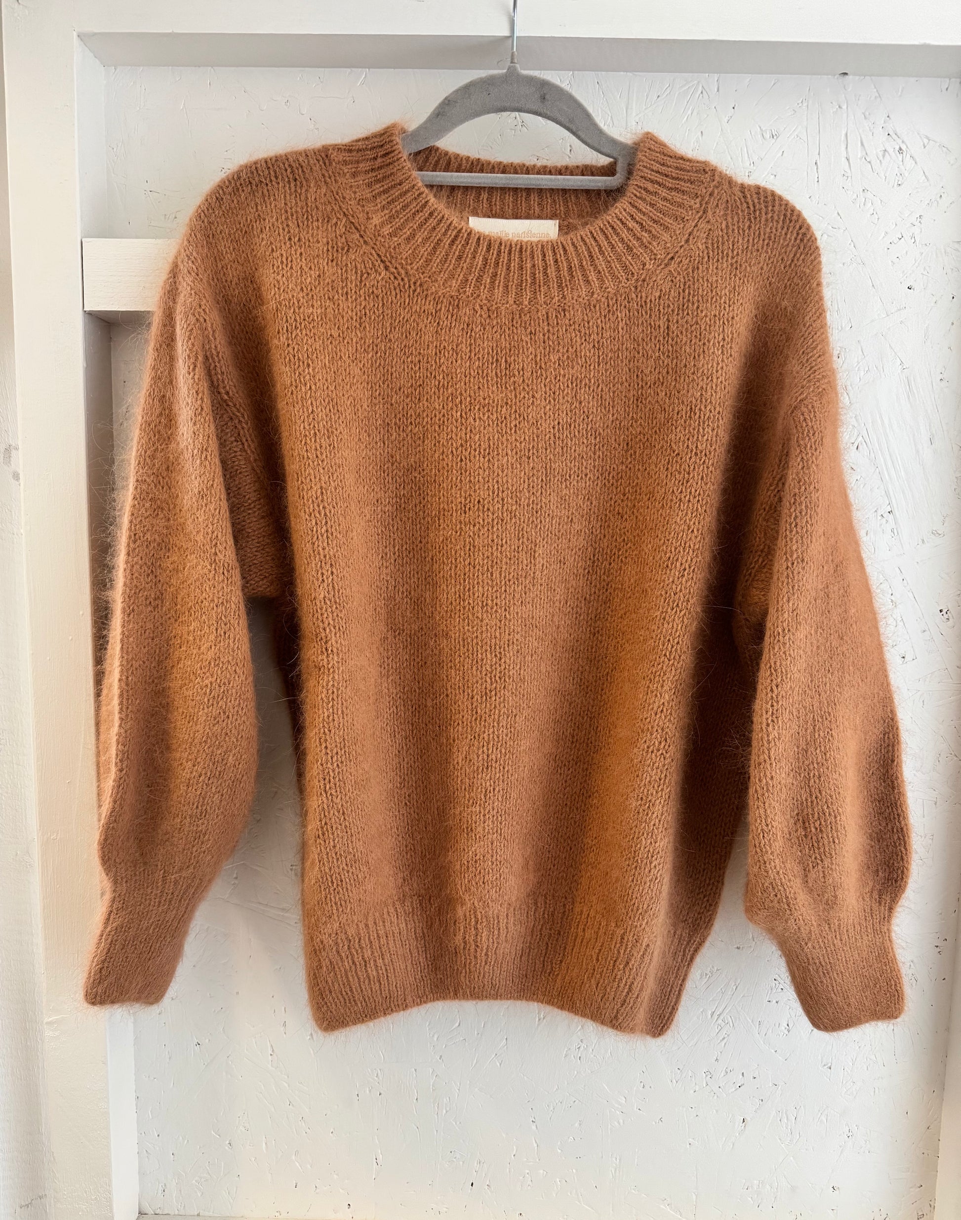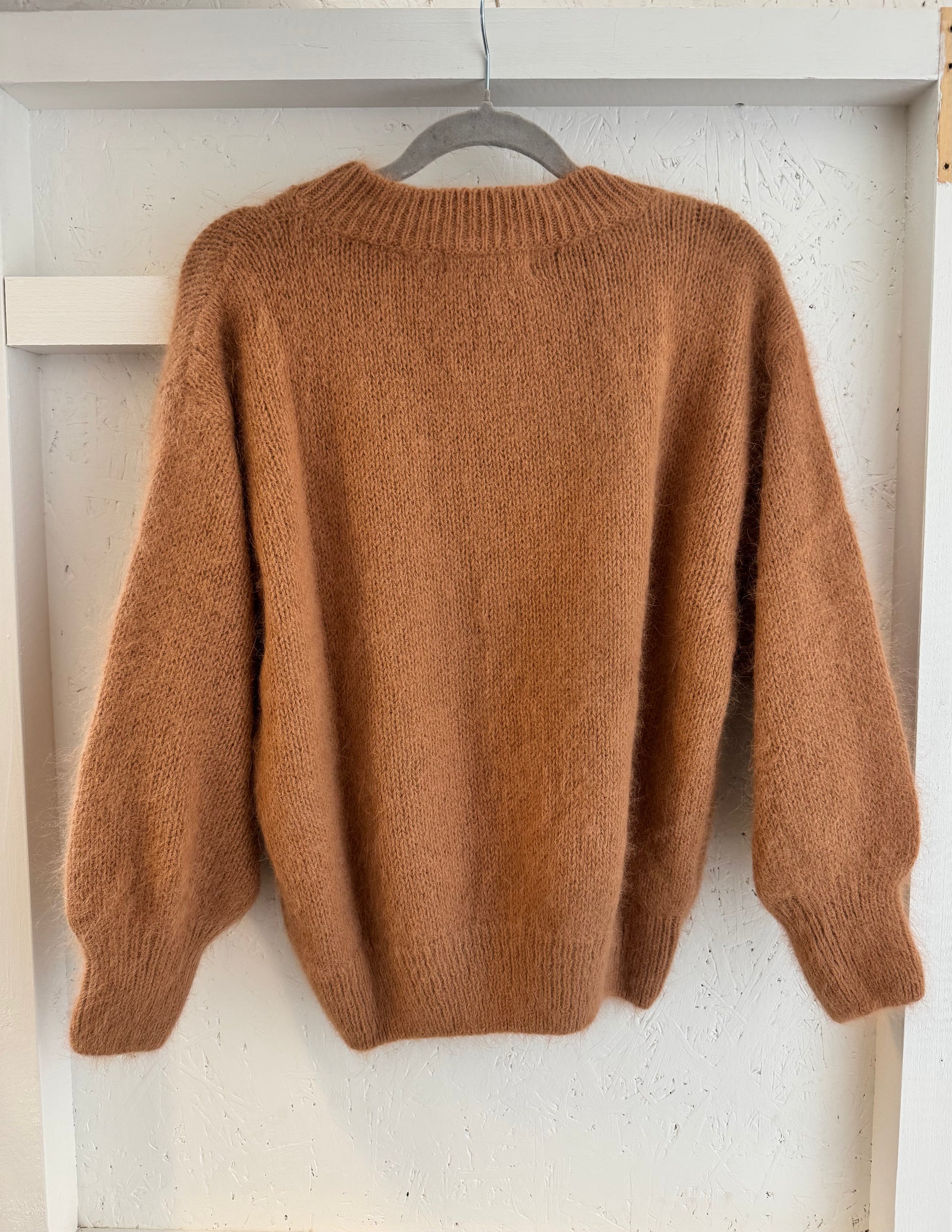 Ihana kanelinsävyinen angoraneule hurmaa pehmeällä ja pörröisellä tunnullaan. Pyöreäkauluksinen malli on ajaton ja helppo yhdistää arkeen sekä juhlavampiin hetkiin. One size -mitoitus (36–44) sopii monenlaiseen tyyliin, ja mukava pituus 58–60 cm tekee siitä käytännöllisen ja rennon.