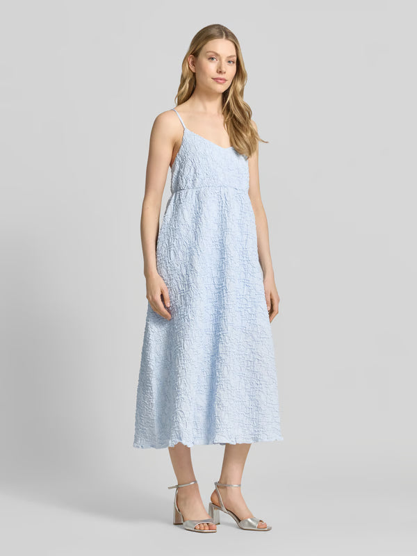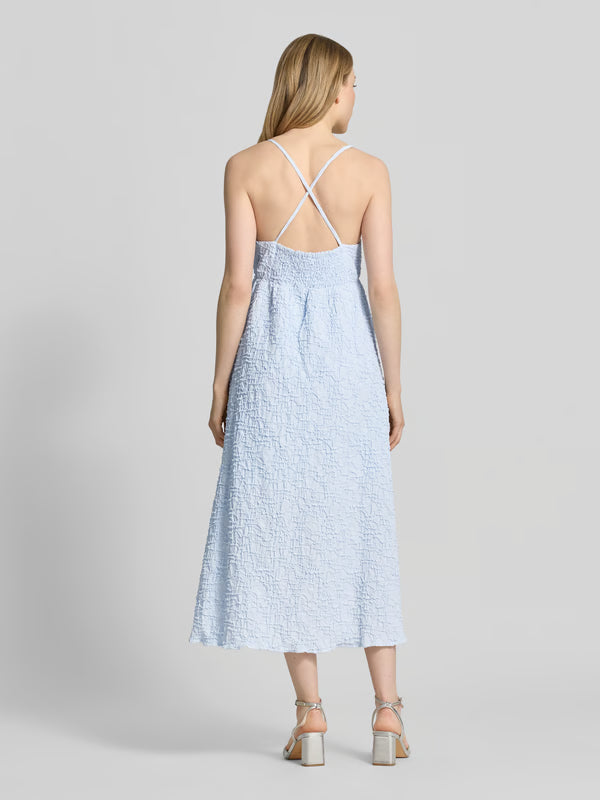 Naisten Copenhagen Muse -merkin midi-mekko mallia ”CRISTINA” laskeutuu kauniisti A-linjaisesti, ja sen teksturoitu kuvio tuo hienovaraista vaihtelua arkeen. Ristiin menevät olkaimet antavat siluetille modernin ilmeen ja korostavat liikkumisen vapautta. Mekko sopii erinomaisesti monenlaisiin tilanteisiin, tarjoten mukavuutta ja aina viimeistellyn vaikutelman