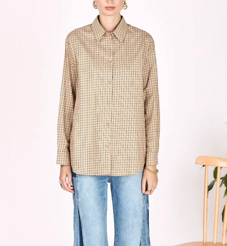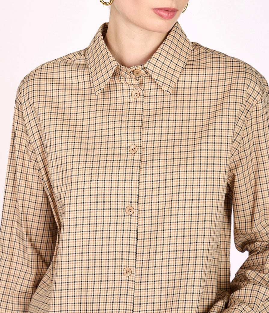 Ihana, klassinen ruutukauluspaita 100 % puuvillapopliinia. Kaunis beige sävy ja väljä one size -mitoitus tekevät tästä mukavan ja ajattoman valinnan arkeen ja vapaa-aikaan.