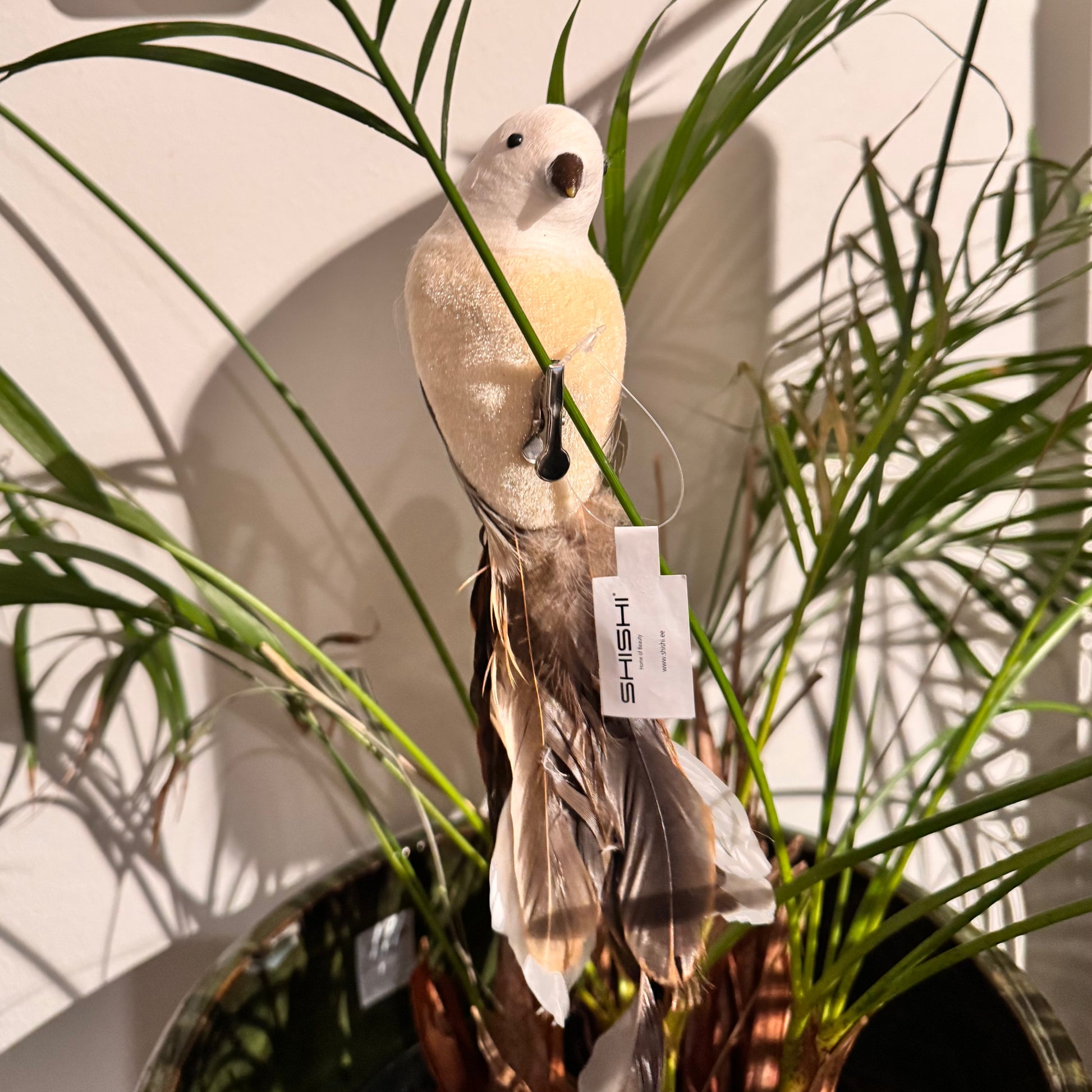 Söpö sisustuslintu klipsillä kaunistaa niin kranssia kuin kodissa viherkasveja.