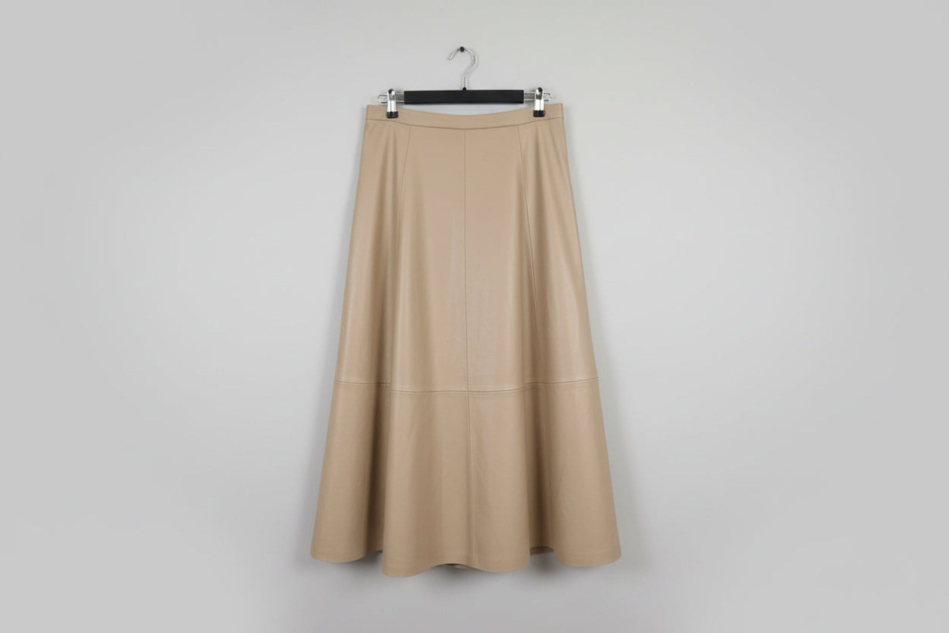 Tyylikäs ja monikäyttöinen midi-mittainen hame pehmeästä nahkajäljitelmästä. Tyylikäs istuvuus. Hiekka sävy tekee hameesta helpon yhdistää niin arkeen kuin viimeisteltyihin asukokonaisuuksiin.