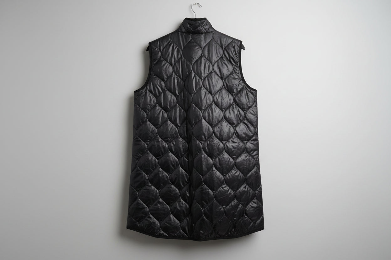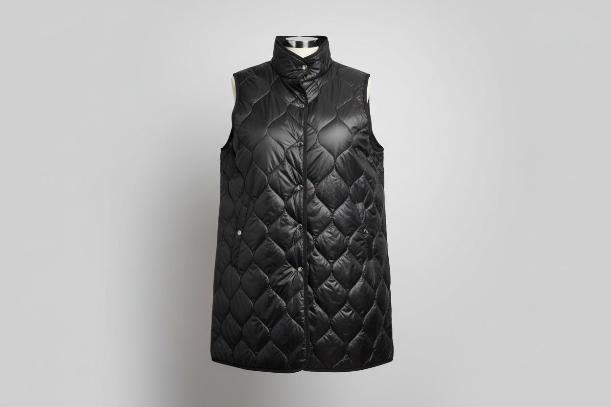Ohut toppaliivi, kaunis kapea malli. Kevyt ja miellyttävä päällä, sopii erinomaisesti käytettäväksi takin alla tai sellaisenaan. Pystykaulus. Liivi on kiva kerrostaa eri asukokonaisuuksiin.