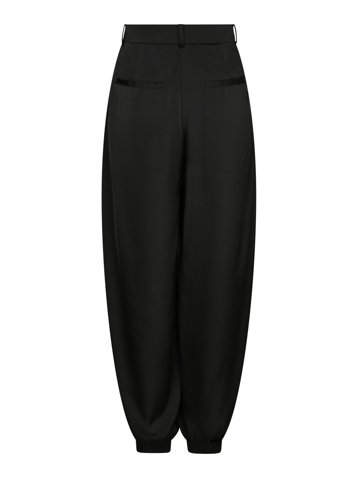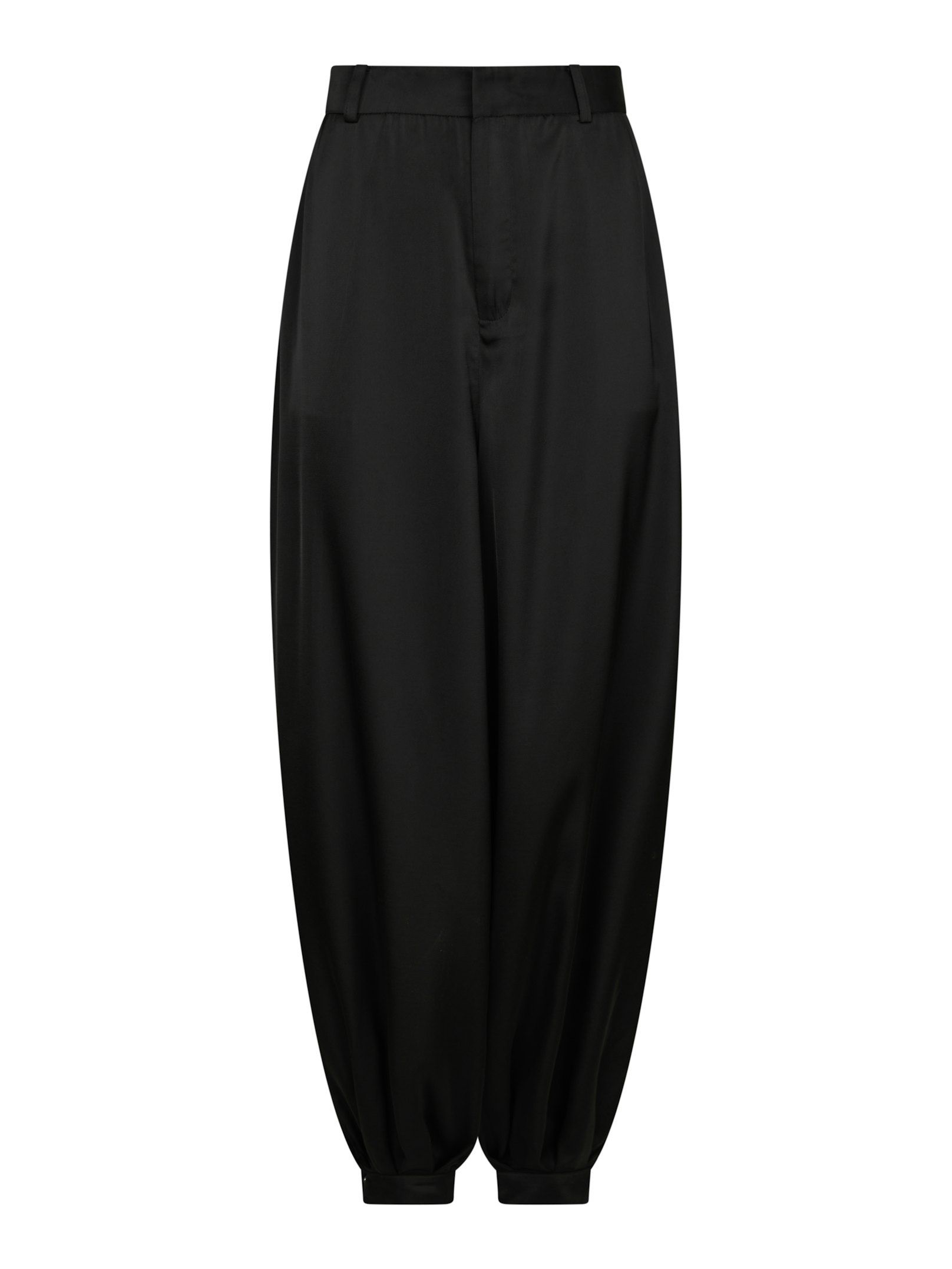 Housut näyttävällä balloon-efektillä pehmeää ja ylellistä satiinilaatua. Lahkeensuissa oleva resori tuo modernia ilmettä ja mukavuutta. Elegantti siluetti tekee housuista helpon valinnan sekä arkeen että huoliteltuihin asukokonaisuuksiin.