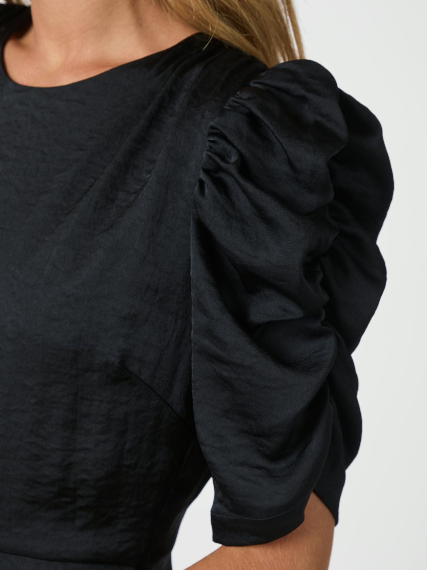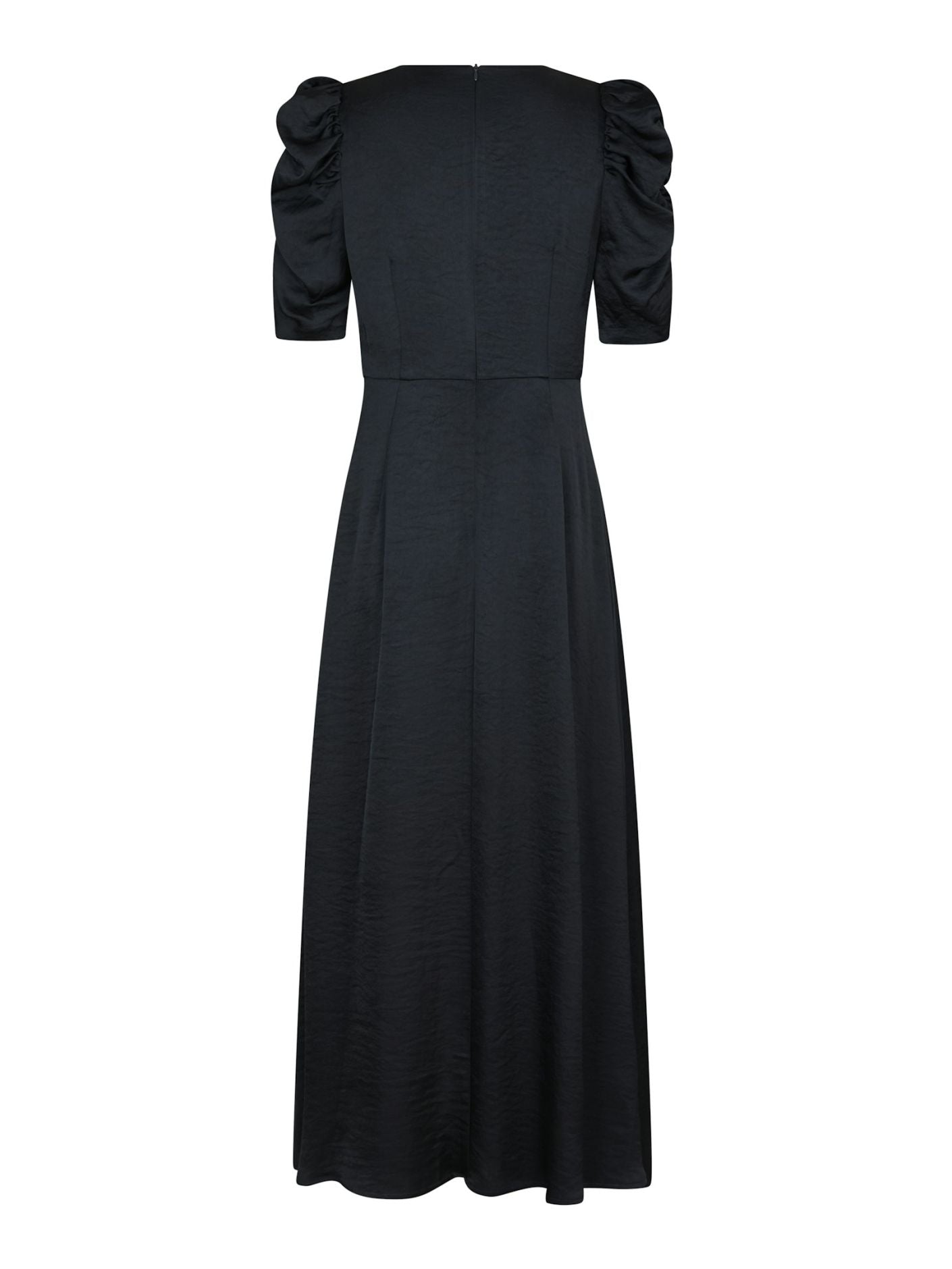 Elegantti ja naisellinen pitkä mekko. Mekossa on lyhyet hihat, joissa on kaunis rypytys, sekä vetoketju niskan takana.