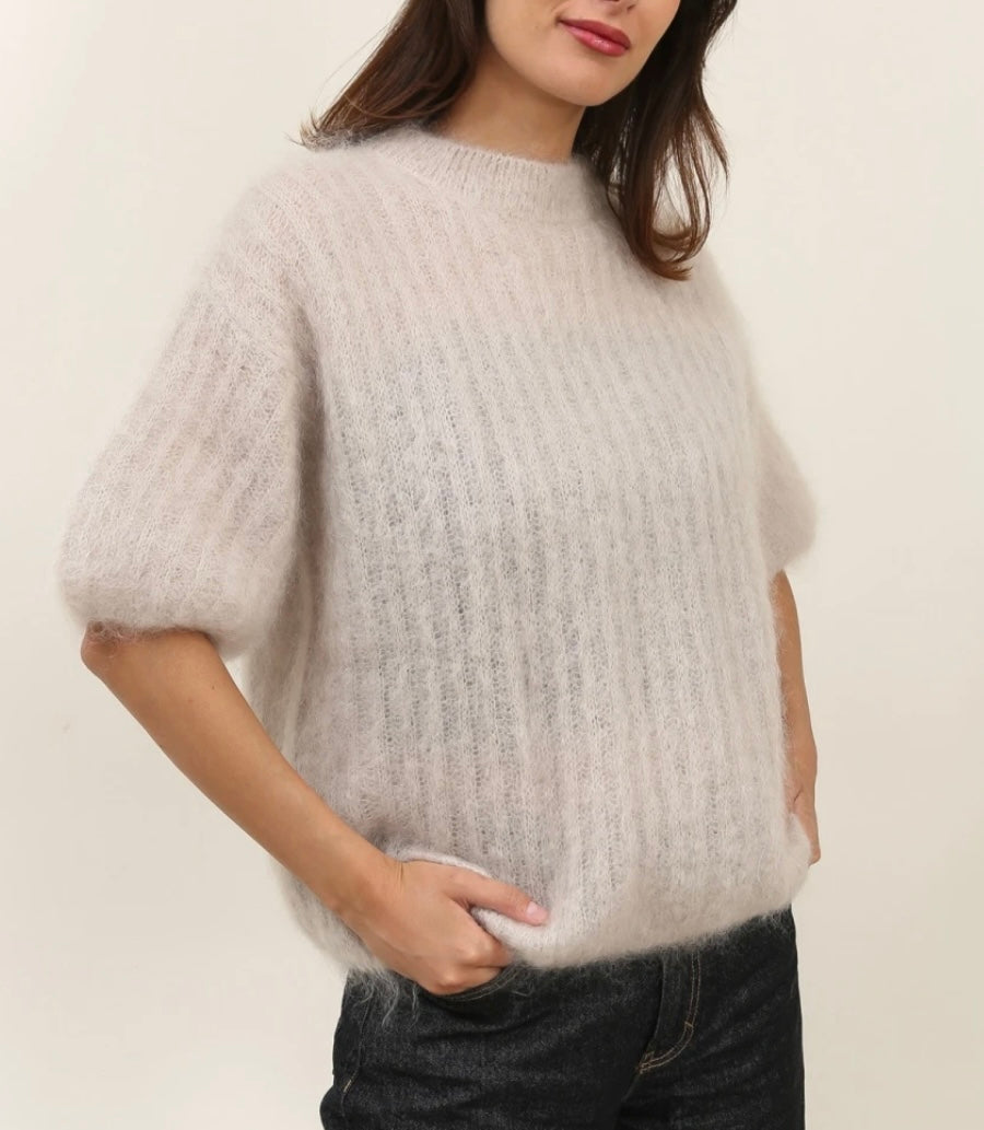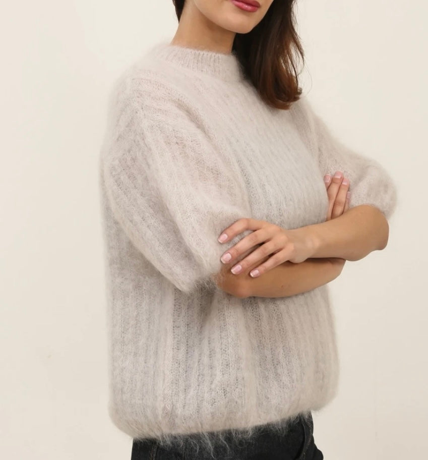 Pyöreäkauluksinen, hihaton neulepaita, jonka pehmeyden ja ylellisyyden tuo 81 % kid mohair -villa.