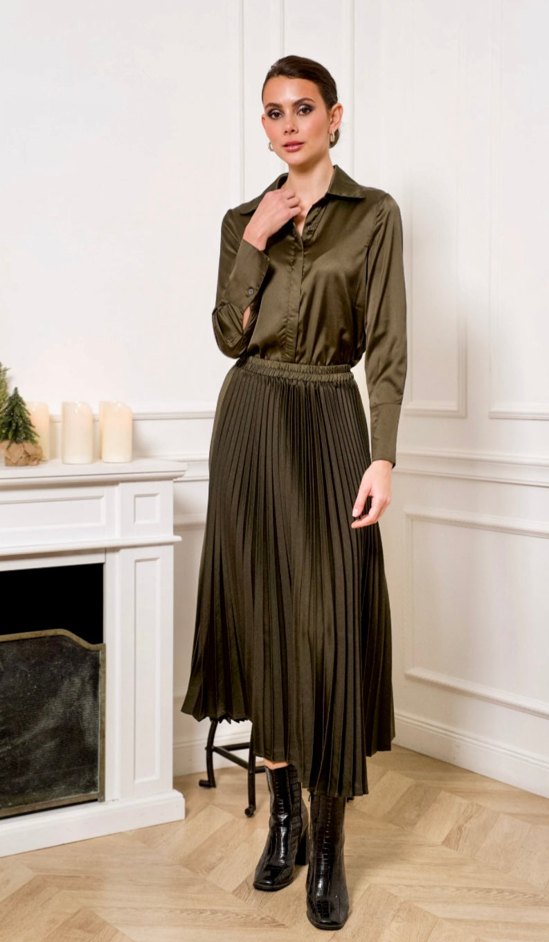 Pliseerattu hame, khaki