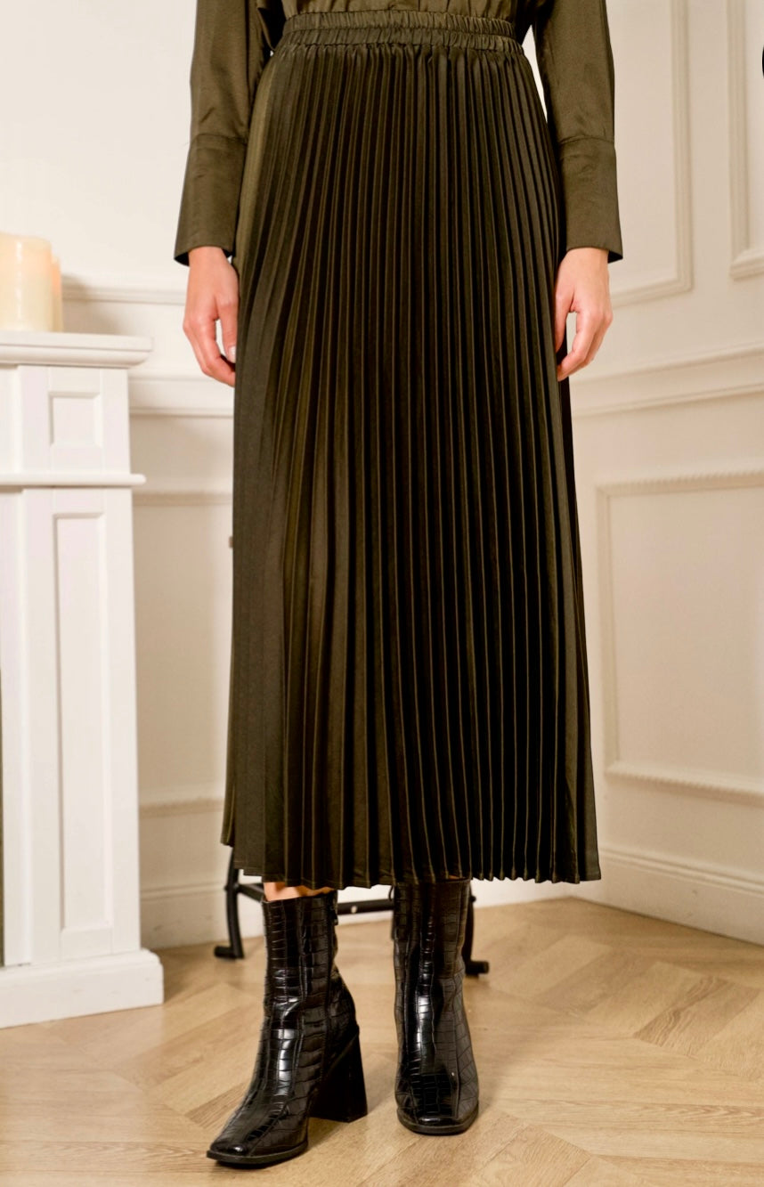 Laadukas satiininen, pliseerattu hame.