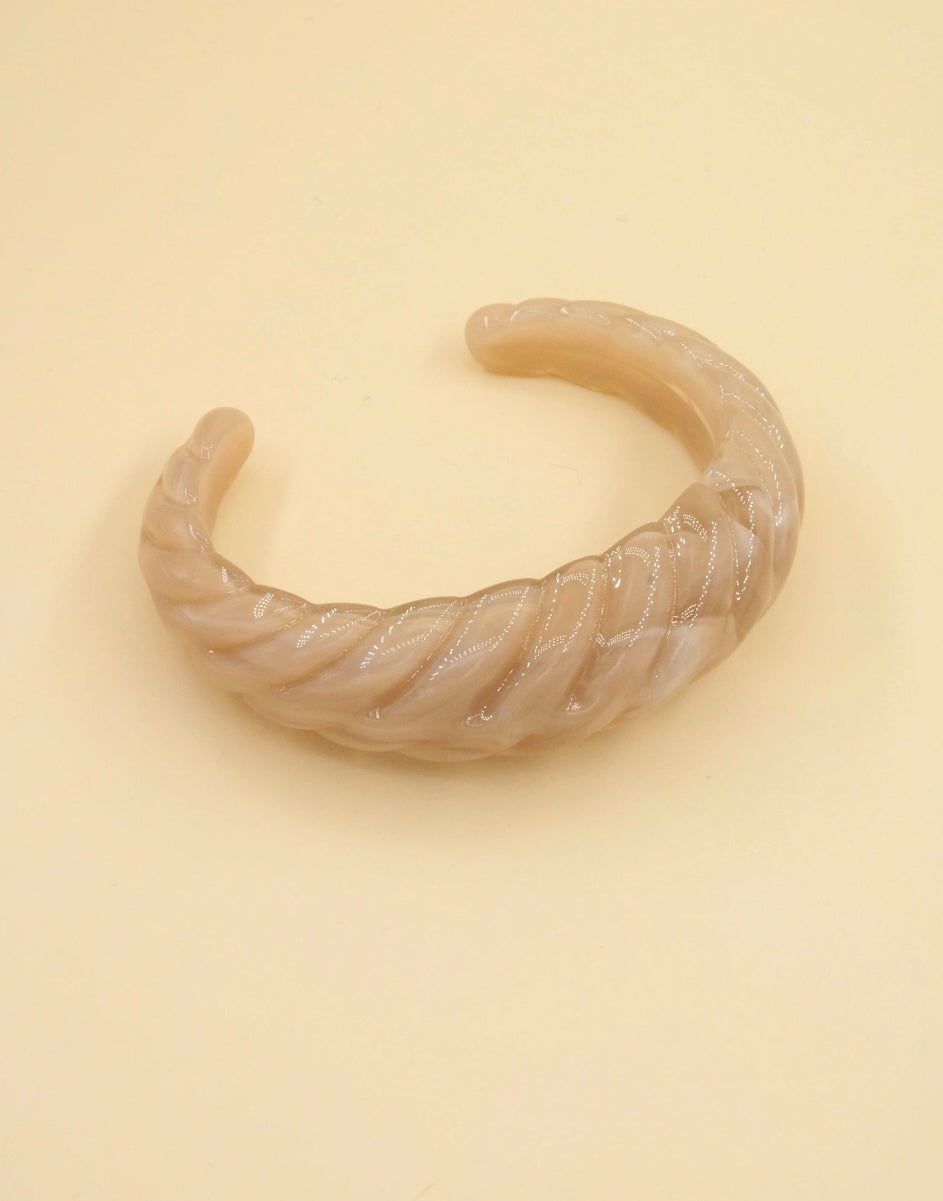 Rohkea ja trendikäs ranneke, jossa on näyttävä kierrekuvio ja veistoksellinen viimeistely. Kevyt, elegantti ja persoonallinen asuste, joka tuo ilmettä sekä syksyn että talven tyyleihin. Täydellinen lisä modernin korukokoelman joukkoon.