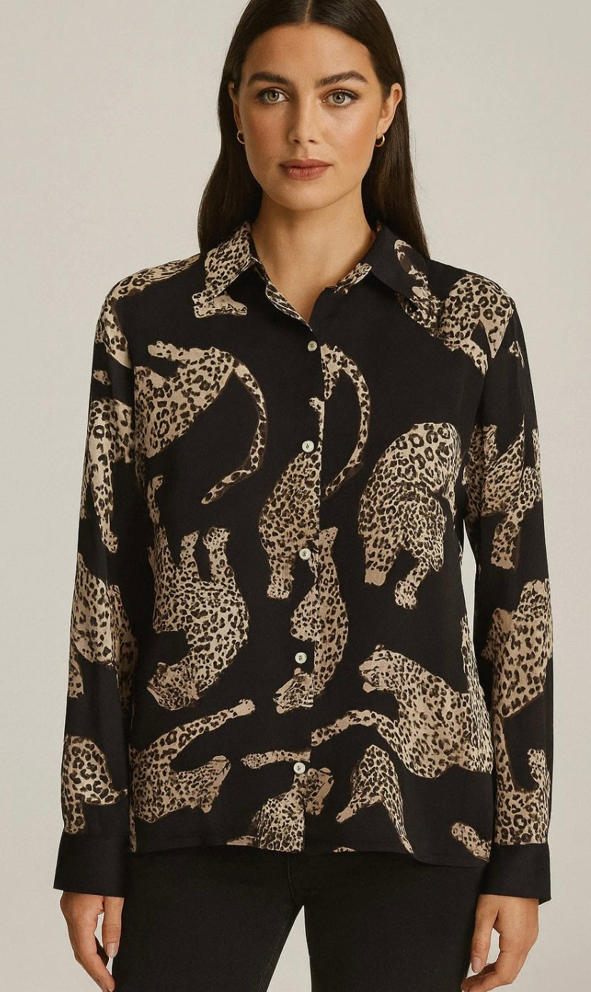 Pitkähihaiset paita klassisella kauluksella ja eläinkuosilla.