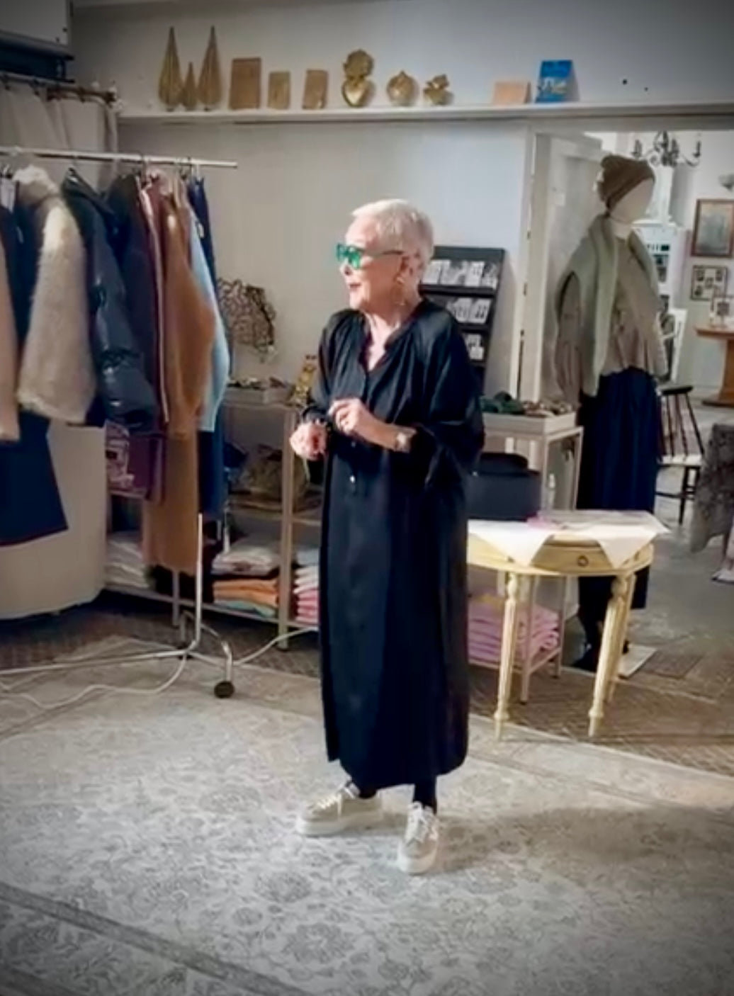 Ajattoman tyylikäs, rennosti laskeutuva mekko, joka hurmaa yksinkertaisuudellaan ja ylellisellä materiaalillaan. Mekossa on väljähkö istuvuus, täyspitkät hihat ja kaunis pääntie pienellä koristuksella ja muutamalla napilla, jotka tuovat kokonaisuuteen ryhdikkyyttä.