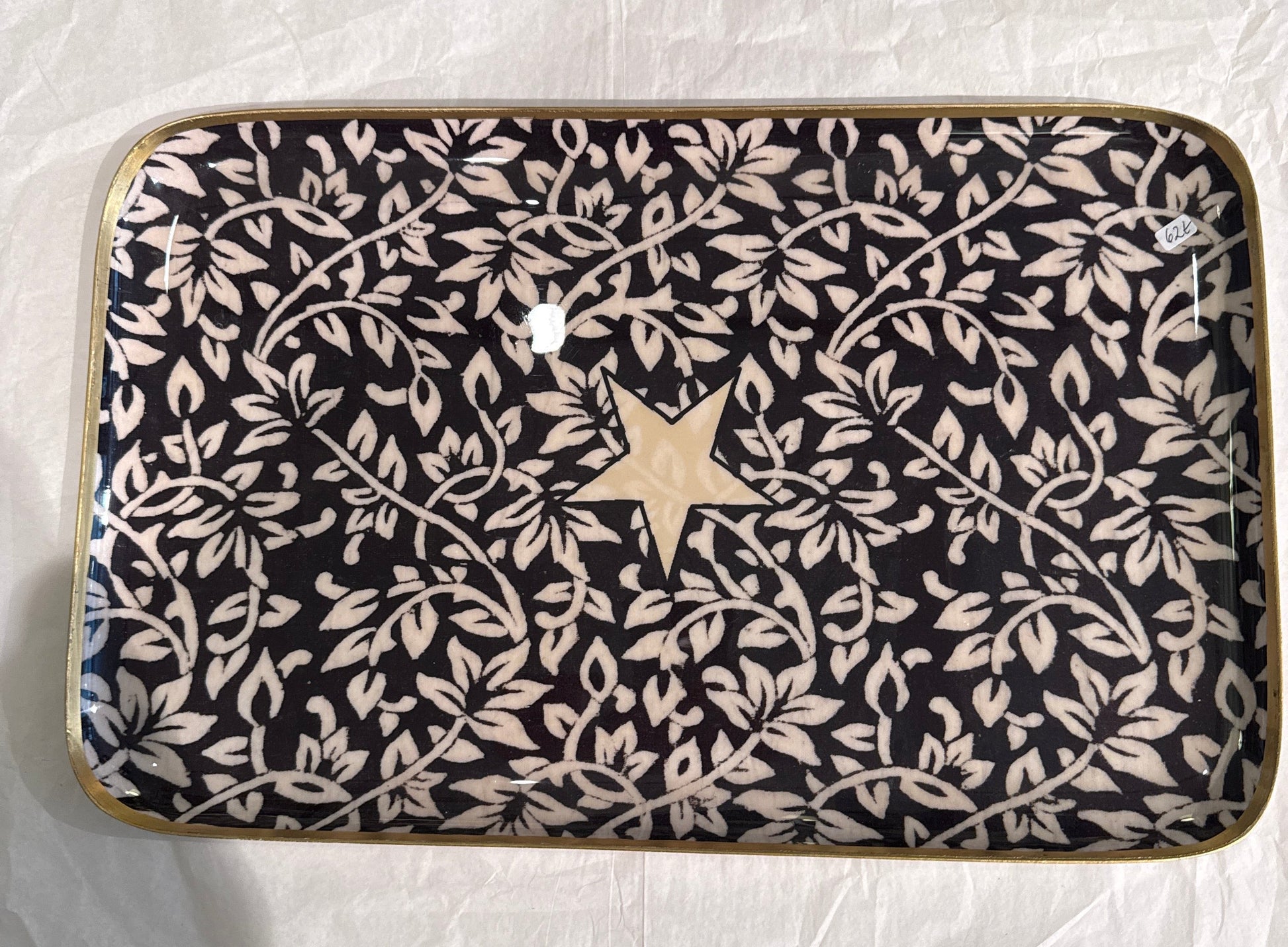 Kaunis tarjotin, joka tuo hienostunutta uutta ilmettä sisustukseen ja kattaukseen. Eleganttinen ja yksityiskohtainen kuviointi sekä kaunis väri. Suorakulmainen tarjotin on valmistettu emaloidusta alumiinista.