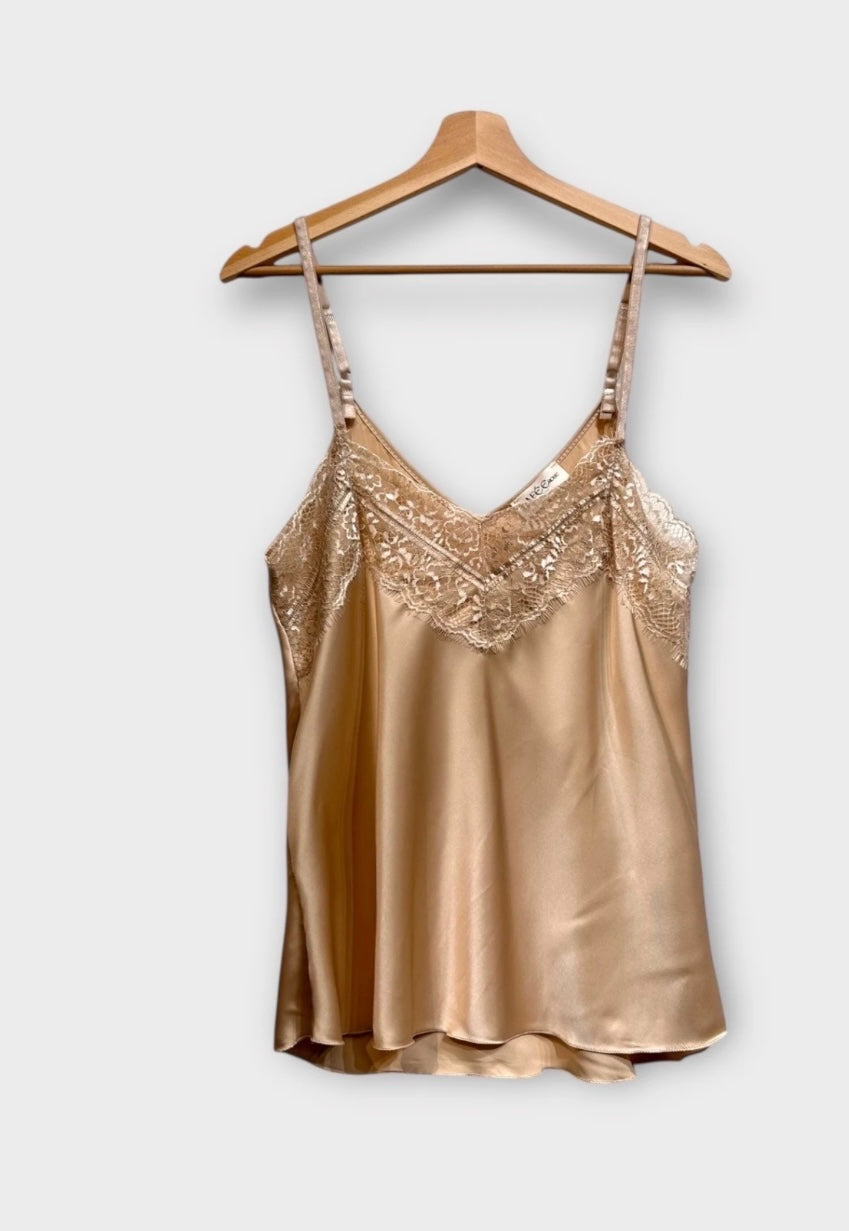 Hento yksivärinen toppi, jossa pitsiä ja säädettävät olkaimet.