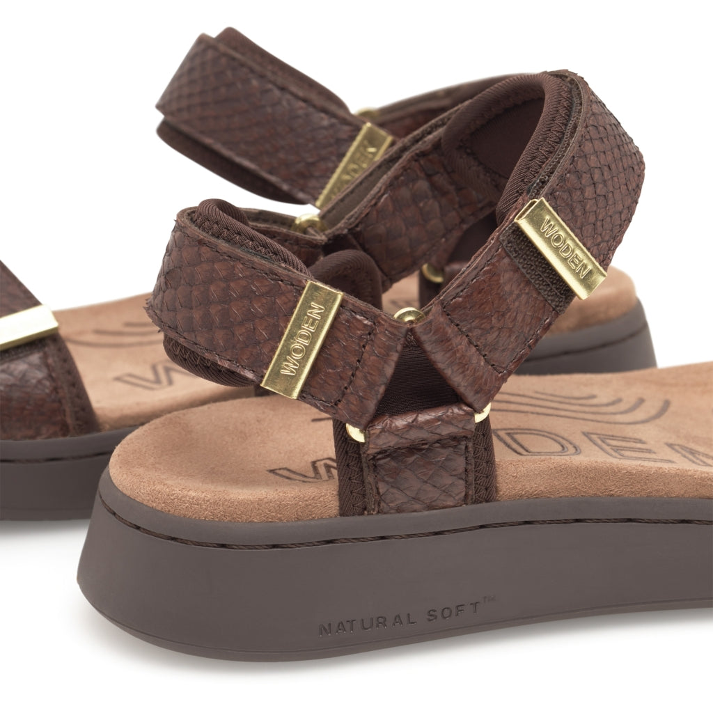 Yhdistäen vastuullisen innovoinnin ja tyylin, sandaalissa on anatomisesti muotoiltu jalkapohja, kolme säädettävää tarranauhaa sekä kierrätyskumia sisältävä ulkopohja. Mukavuutta viimeistelee WODENin Natural Soft Technology™, joka tuo käyttömukavuutta ja huoliteltua, vastuullista eleganssia.
