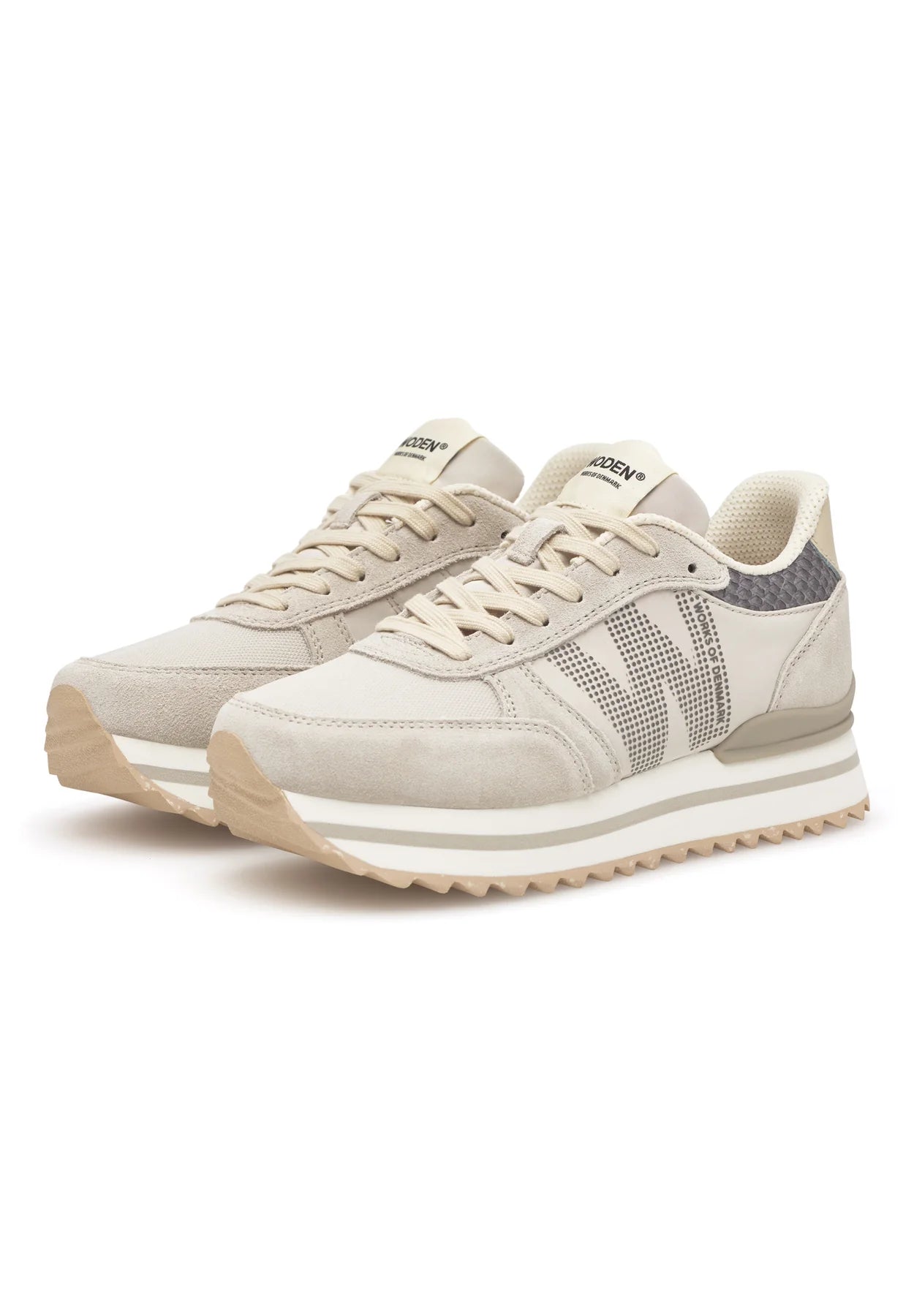 Mielettömät Ronja Plateau -malli, joka on yksi suosituimmista tennaristamme. Se perustuu innovatiiviseen muotoiluun, jossa on tyylikkäät väriblokkidetaljit ja urheilullinen ilme. Materiaali on nupukki- ja tekstiiliyhdistelmä, ja kantaan on lisätty erottuvat kalannahkakoristeet.